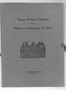 PLIEGOS POETICOS ESPAÑOLES EN LA BIBLIOTECA AMBROSIANA DE MILAN. HOMENAJE A ANTONIO RODRIGUEZ-MONIÑO